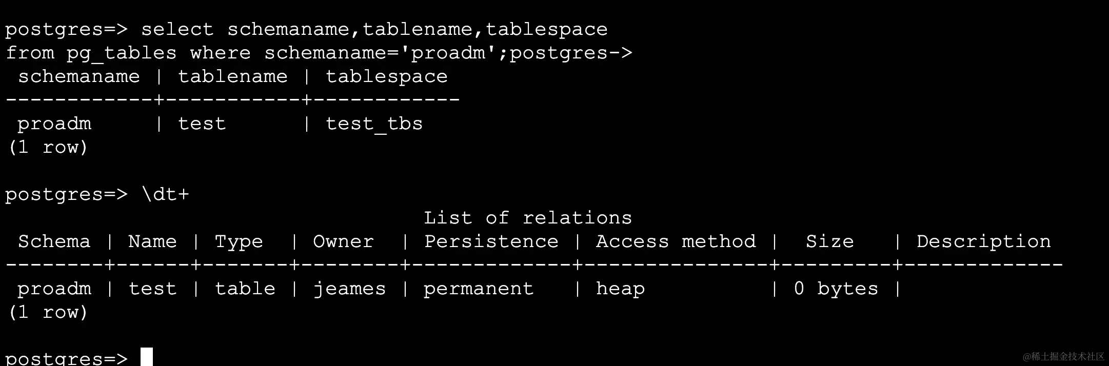 16471 | 16471 | test_tbs | 10 | {postgres=C/postgres,jeames=C/postgres} |