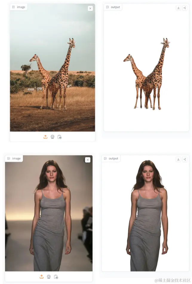 - 超准抠图体验:RMBG v1.4通过其精细的分割技术,能够精确移除背景,即使是在复杂多变的背景中也能轻松处理,为用户提供了前所未有的抠图体验。