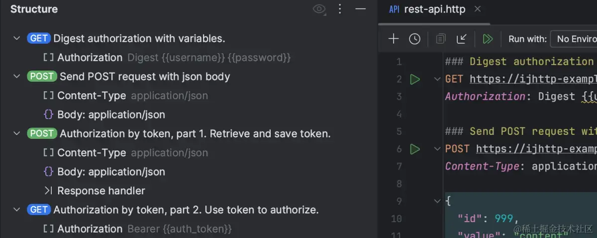 我们改进了HTTP 客户端中的结构.http工具窗口,以简化大文件中的导航。此更新为请求类型引入了颜色编码标签,并更清晰地列出了其内容。