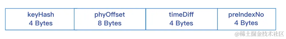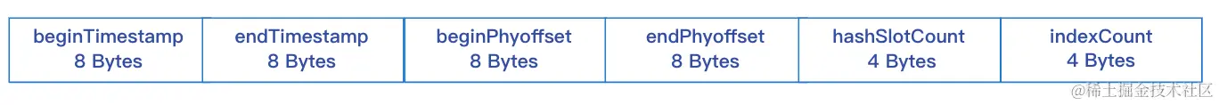 每个indexFile文件的大小是固定的,一个IndexFile文件大约可以保存2000W个消息的索引,IndexFile的文件结构如下: