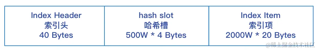 index header记录indexFile文件的整体信息,占40个字节,有以下信息: