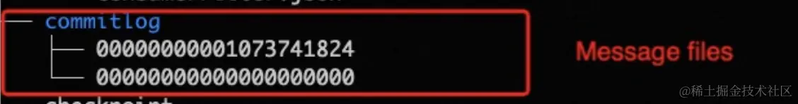 比如第一个文件中第一条消息的偏移量为0,那么第一个文件的名称为00000000000000000000,当这个文件存满之后,需要重新建立一个CommitLog文件,一个文件大小为1G,