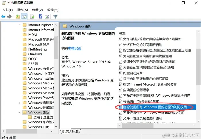 步骤4:返回到 【Windows更新】 界面,双击打开 【删除使用所有Windows更新功能的访问权限】 选项。