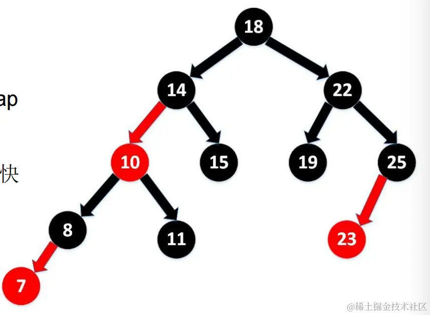 - 当数组指定索引位置的链表长度 > 8 时,且map中的数组的长度 > 64时,此索引位置上的所有key-value对使用红黑树进行存储。