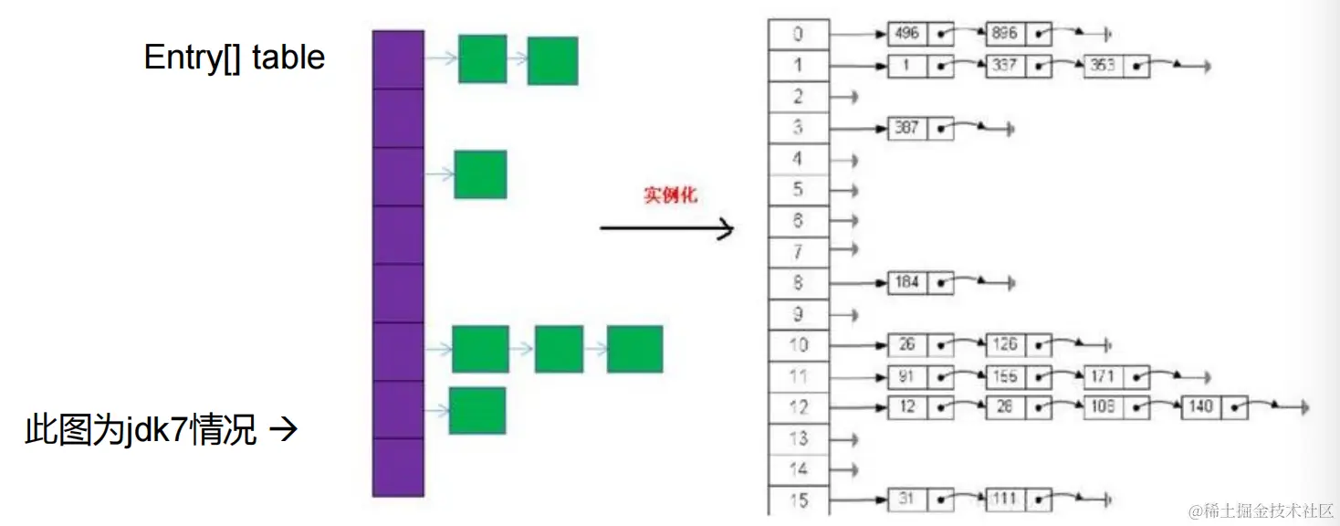 HashMap map = new HashMap();// 默认情况下,先不创建长度为16的数组- 当首次调用