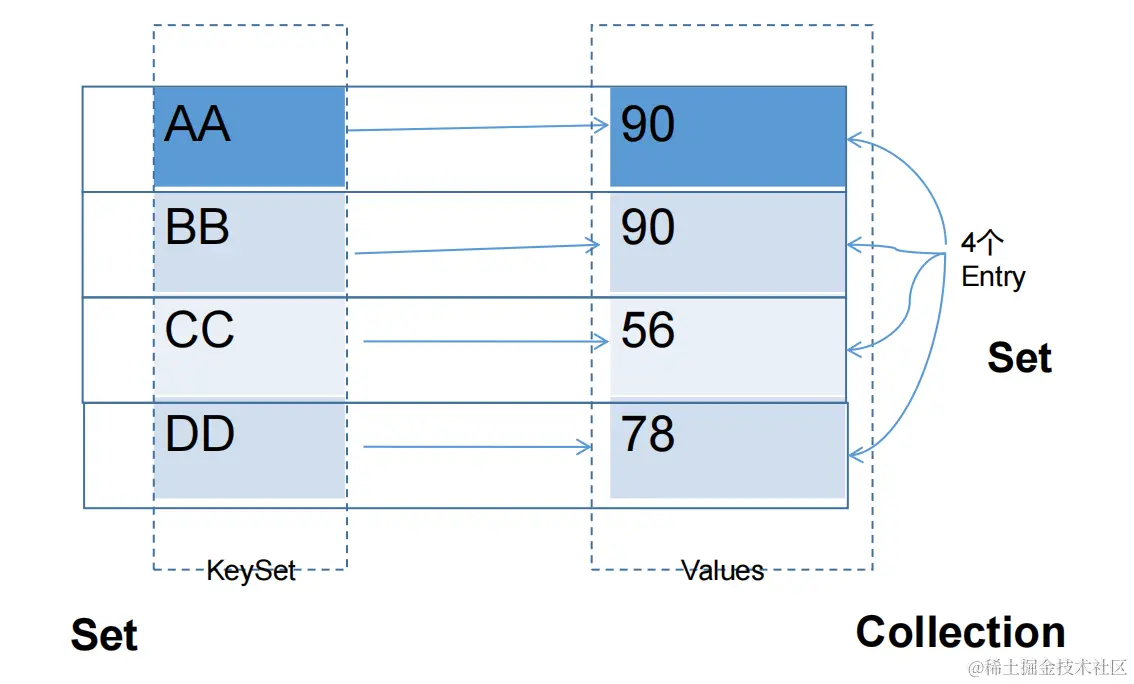 - entrySet:存储具体元素的集
