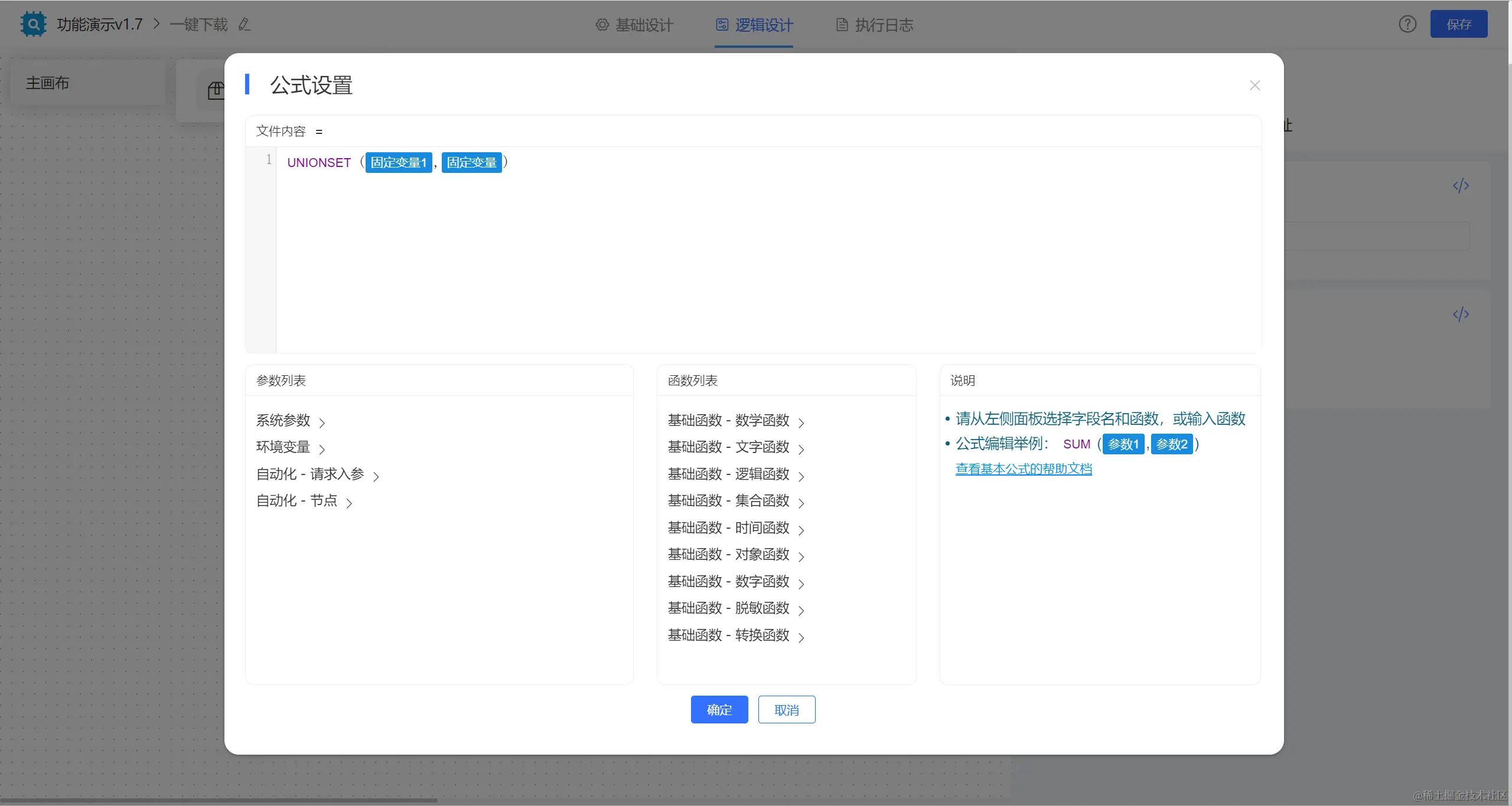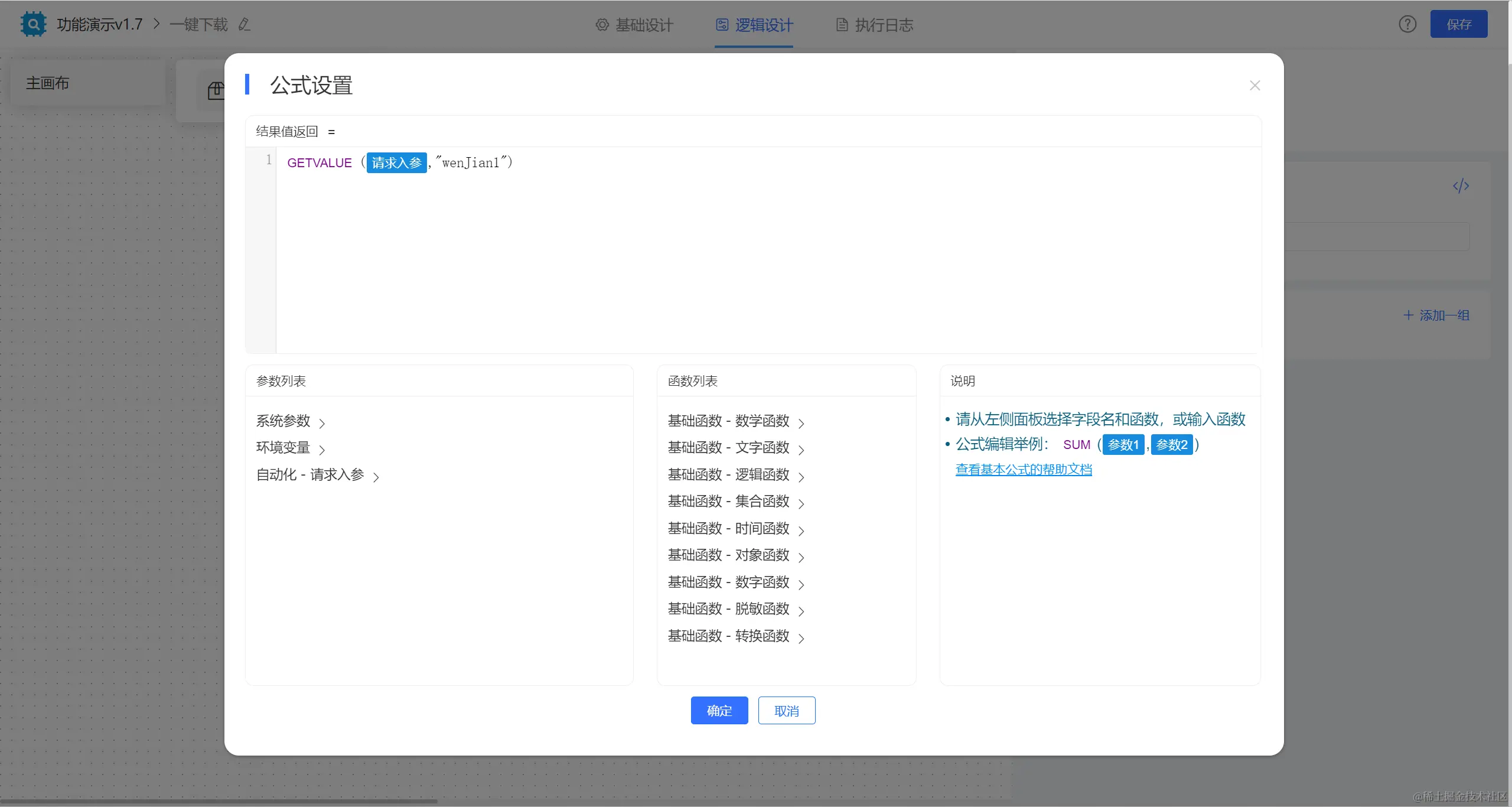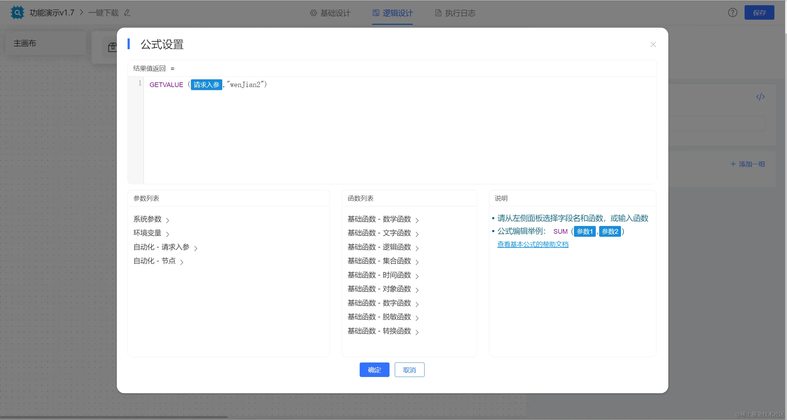【固定变量1】节点中配置公式获取文件对象