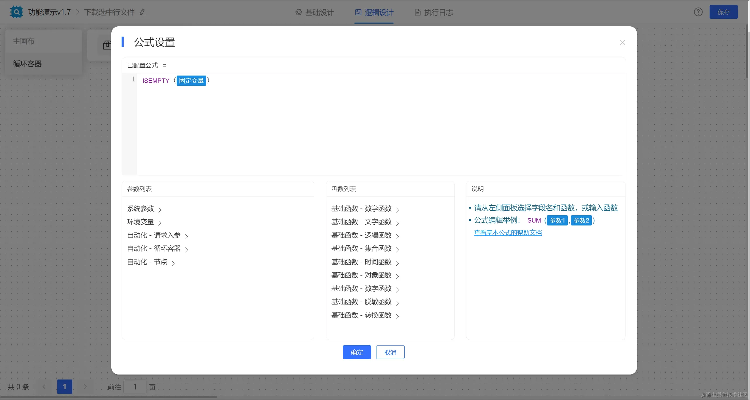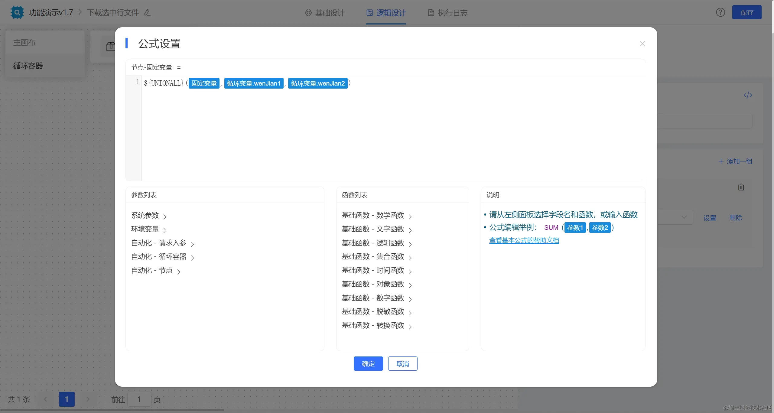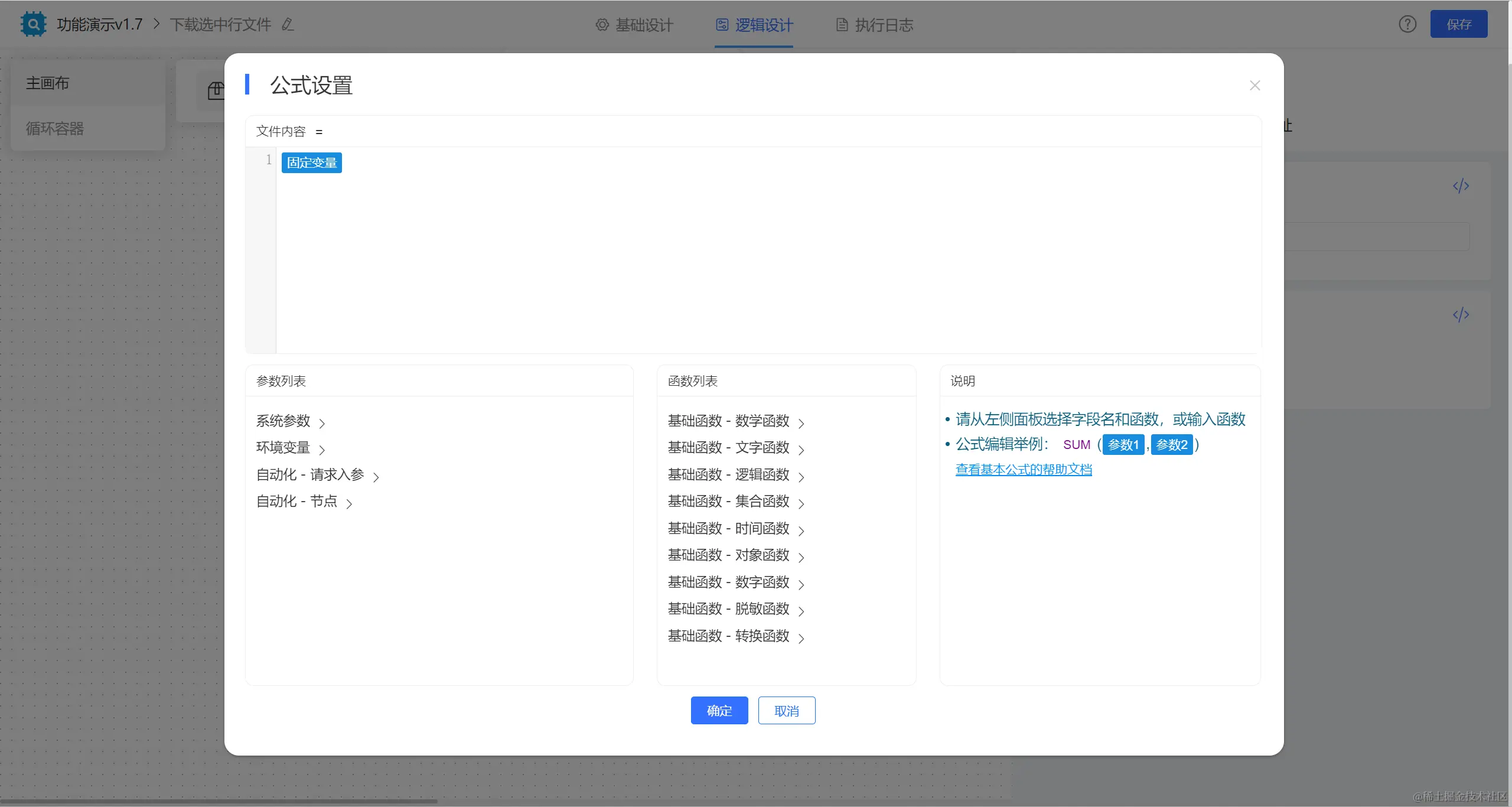 【固定变量】节点中配置公式获取文件对象