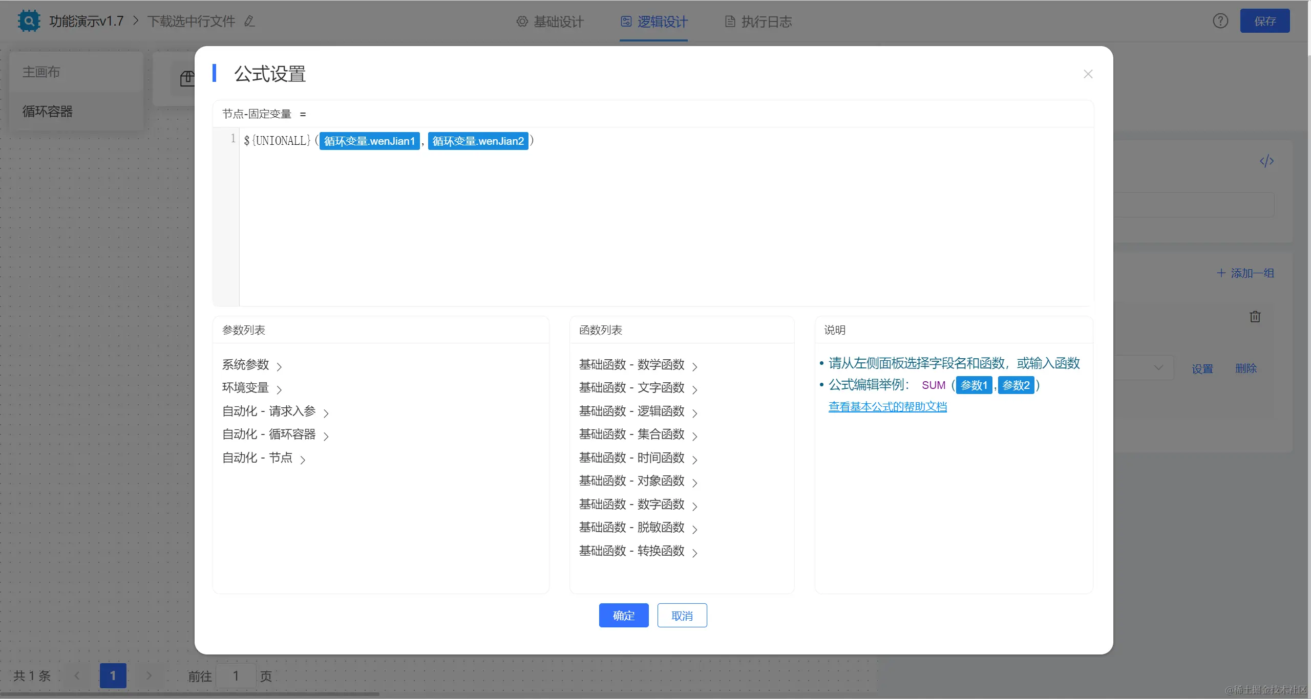 【zip压缩】节点使用公式UNIONSET函数配置将两个对象组合为一个数组