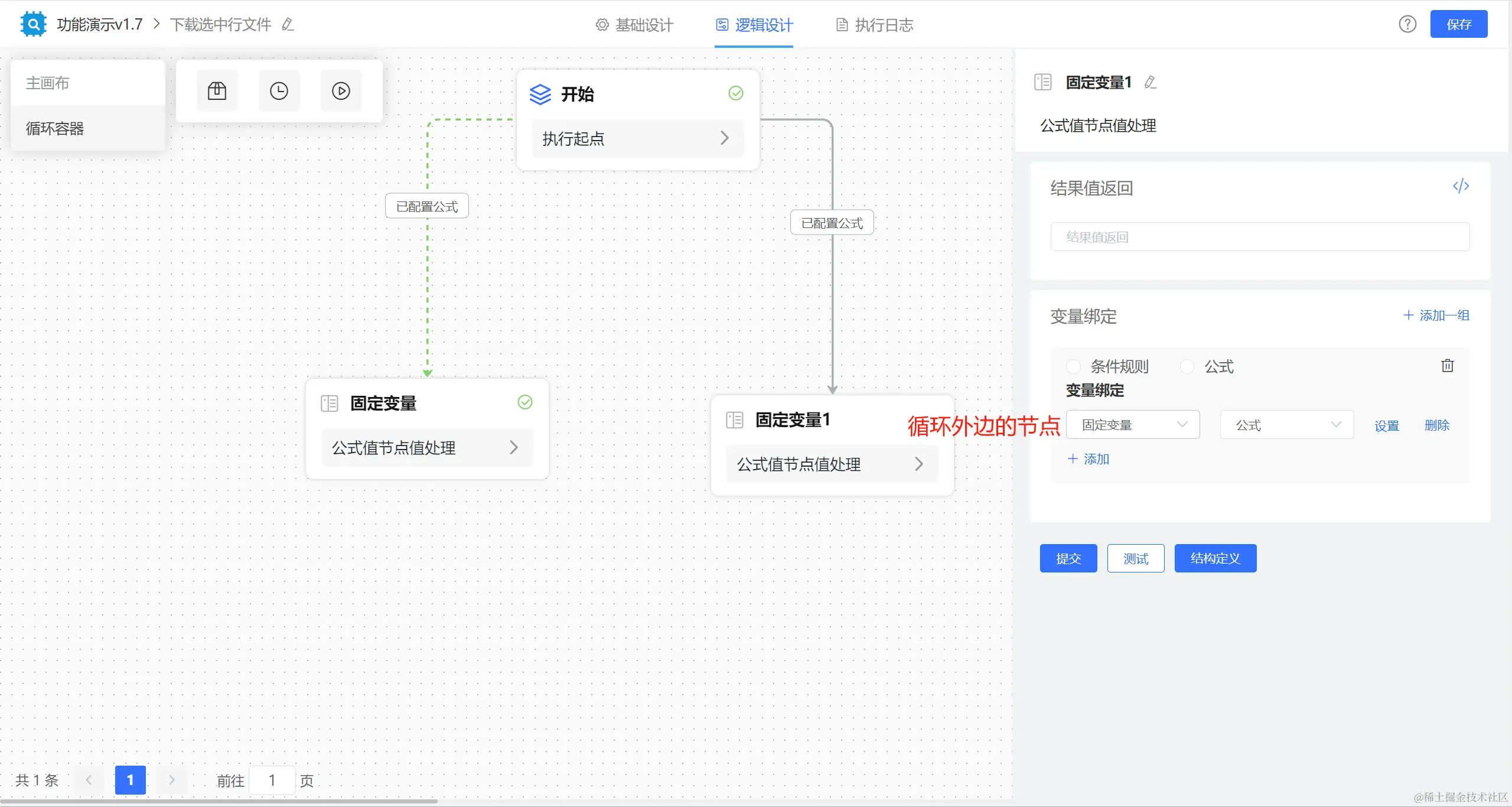 最后在循环外边【固定变量】节点的值如下