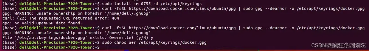 首先,-m 0755是设置文件或目录的权限的选项,0755表示所有者具有读、写和执行权限,而其他用户具有读和执行权限。随后的-d /etc/apt/keyrings指定要创建的目录路径,其创建一个名为/etc/apt/keyrings的目录。该命令的目的是创建/etc/apt/keyrings目录,该目录将用于存放密钥文件。