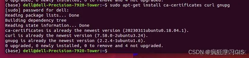 其中,ca-certificates是一个软件包名称,它包含了一组根证书和中间证书,用于验证HTTPS连接的安全性;安装ca-certificates软件包可以确保系统具有最新的根证书列表。curl是一个用于在命令行中进行网络请求的工具,它支持多种协议,如HTTP、HTTPS、FTP等;安装curl软件包可以让我们在终端中方便地进行网络请求和下载文件。gnupg是GNU隐私卫士(GNU Privacy Guard)的缩写,也称为GPG;它是一个用于加密和签名数据的工具集,安装gnupg软件包可以在系统中使用GPG密钥和加密功能。