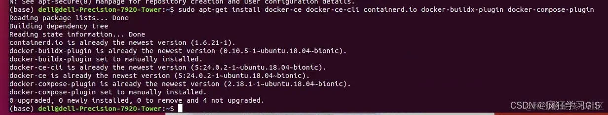 sudo apt-get install docker-ce docker-ce-cli containerd.io docker-buildx-plugin docker-compose-plugin