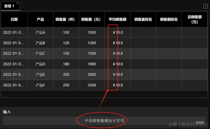 销售量排名列的计算,都是类似的方式让AI完成数据的计算与填充