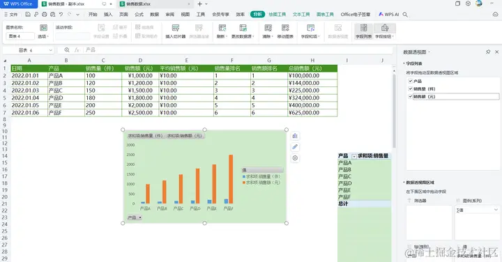 - 分析图表:通过图表,你可以快速看出哪个产品的销售额最高。