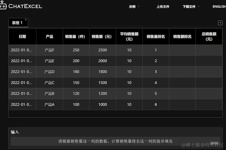 看看ChatExcel是怎么通过聊天的方式来完成表格的数据分析: