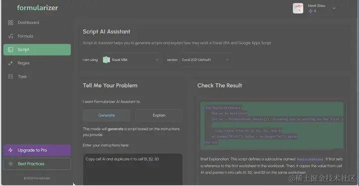 Excel Formulanzer是一个应用AI人工智能技术的Exce|工具。它可以将用户的自然语言指令转换为Excel工作表中的公式,从而简化了数据运算和分析的过程。这种工具特别适合那些不熟悉复杂Excel公式的用户,因为它可以帮助他们快速创建公式,提高工作效率。