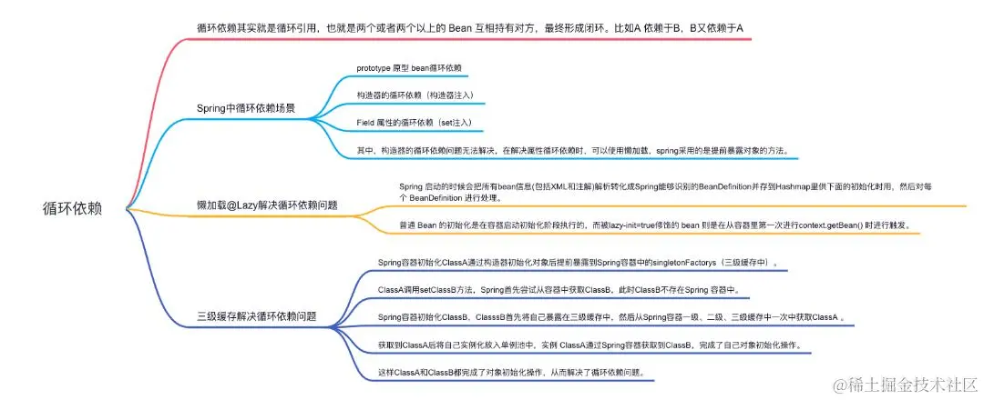 其中,构造器的循环依赖问题无法解决,在解决属性循环依赖时,可以使用懒加载,spring采用的是提前暴露对象的方法。
