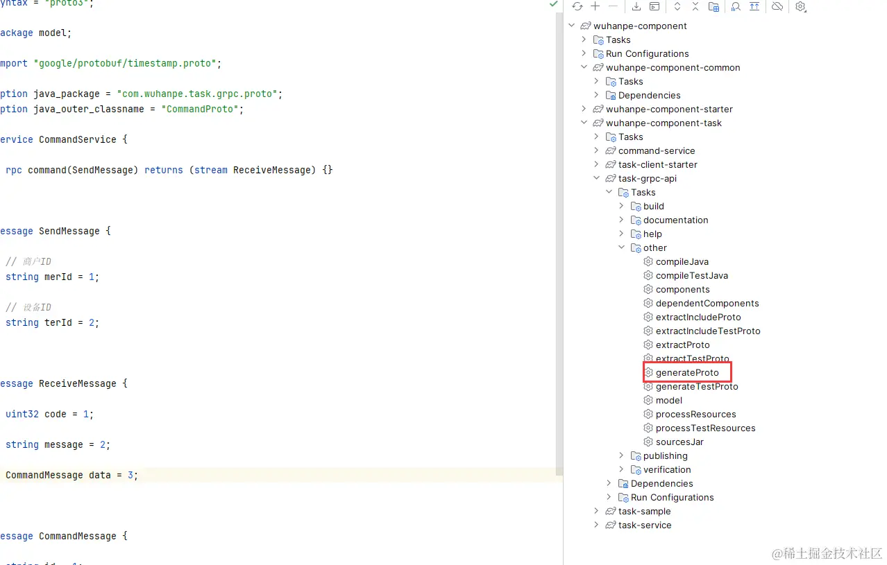 通过idea自带的任务generateProto可以直接生成Java服务类和实体