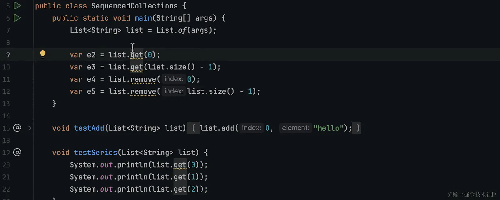 IntelliJ IDEA 2023.3 引入了一个新的Run to Cursor嵌入选项,允许您在调试时最多执行特定行的代码。程序暂停后,只需将鼠标悬停在要执行的代码行上,然后单击“运行到光标”弹出窗口。⌥F9您还可以通过在将插入符放在所需行上后 调用键盘快捷键 ( ) 来使用此功能。