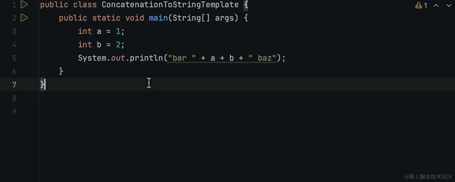 在 Java 21 中发布字符串模板之后,我们实现了一项新的检查来简化连接字符串的替换。IDE 现在将提供快速修复建议,以替换STR 模板处理器的串联。