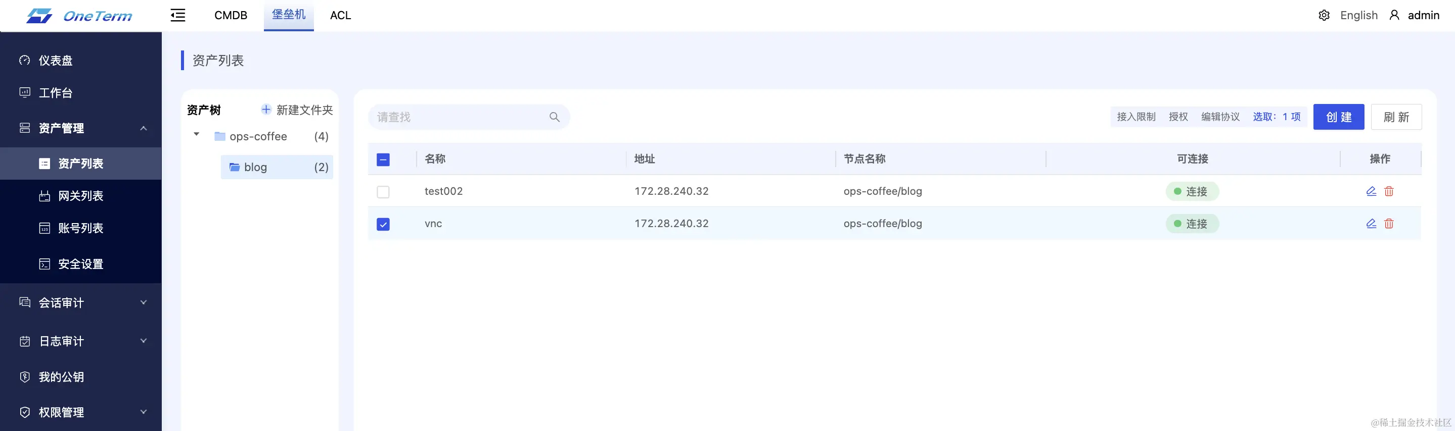 OneTerm支持配置网关,网关功能解决了部分环境无法直接连接的问题,连接会将网关作为跳板连接到目标资产,这样可以覆盖一些复杂的网络环境,很有用