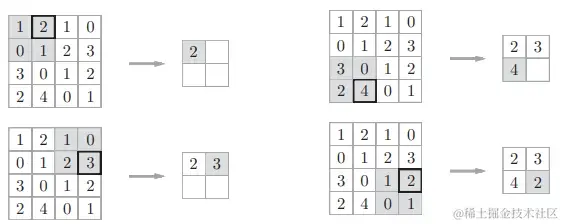 - 对微小的位置变化具有鲁棒性:输入数据发生微小偏差时,池化仍会返回相同的结果