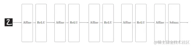 那么在一个全连接的神经网络中,应该就是一个Affine层后面会跟着激活函数层(ReLU或者Sigmoid),例如下: