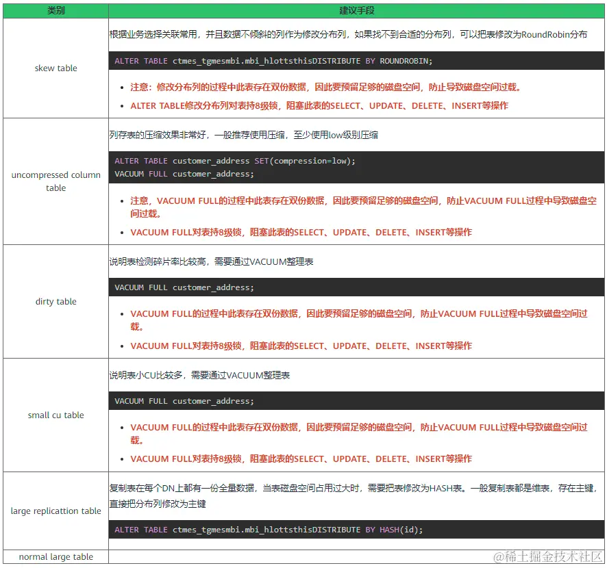 CASE WHEN (skewsize > avgsize * 0.10 AND skewsize > 50 * 1024) THEN 'skew table'