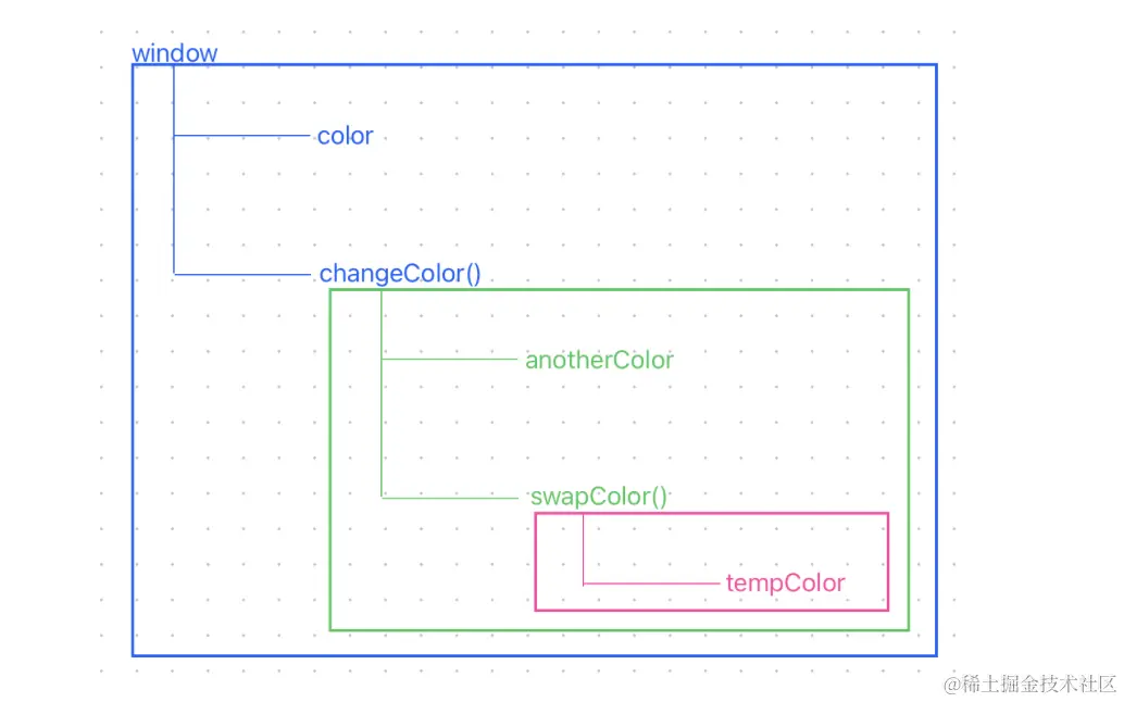 swapColor(); // 这里可以访问anotherColor, color,访问不到tempColor