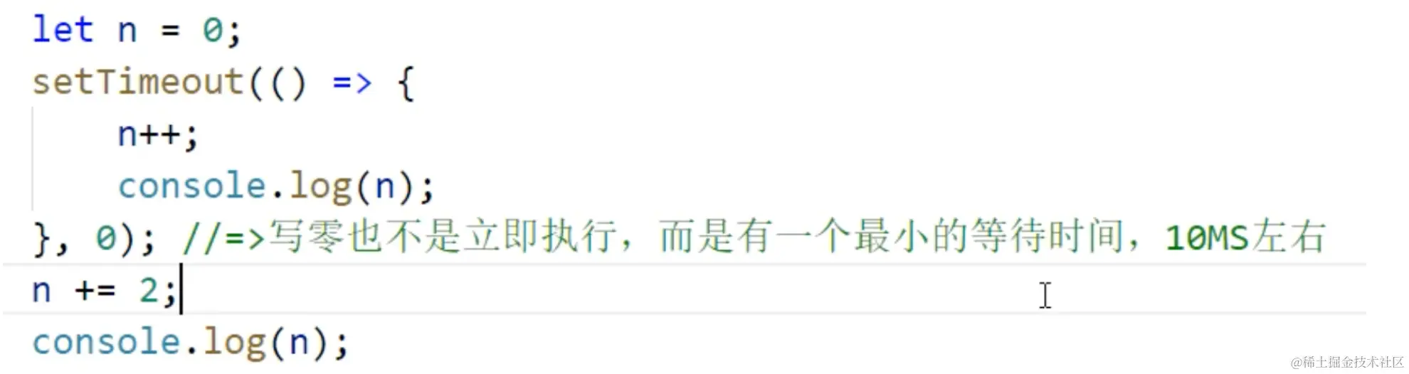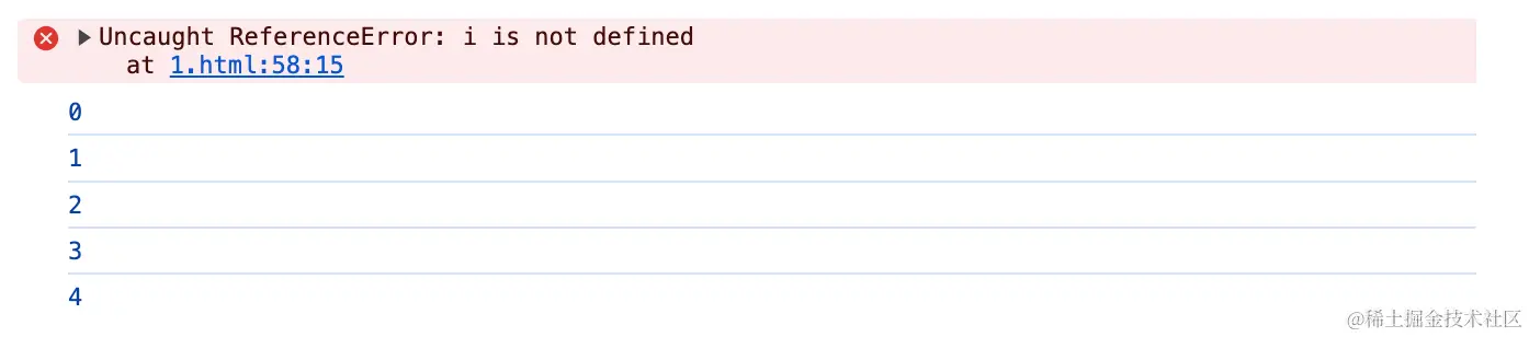 let 定义的 i 是块级作用域,每个 i 只能存活到大括号结束,并不会把后面的for循环的i值赋给前面的setTimeout中的i,而var定义的i是局部变量,这个i的生命周期不受for循环的大括号限制