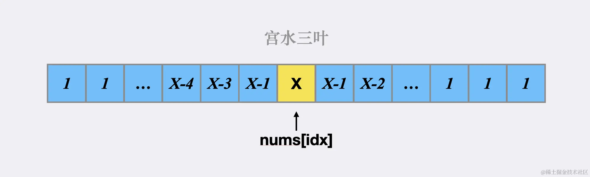 位置 idx 的值为 x,其左边有 idx 个元素,其右边有 n - idx - 1 个元素。