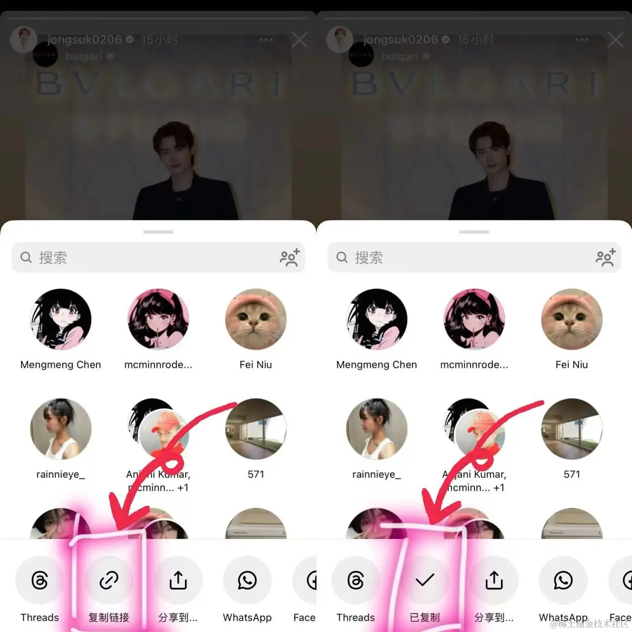 点击“复制链接”后就会显示“已复制”