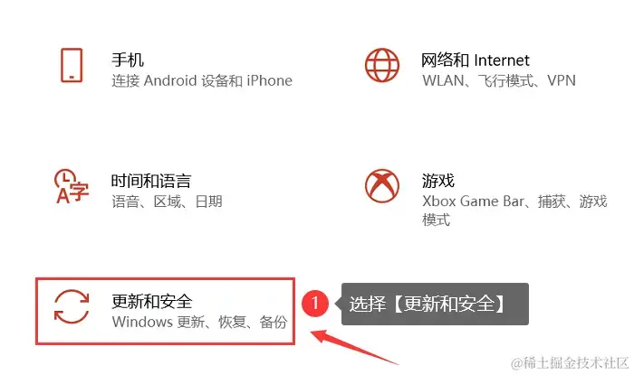 步骤1:打开【设置】应用,选择 【更新和安全】 ;