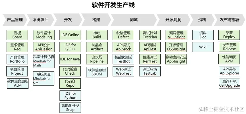 - 覆盖软件全生命周期:CodeArts软件开发工具链覆盖了需求、设计、开发、测试、部署、运维等软件的全生命周期,确保软件研发流程的连贯性和完整性。
