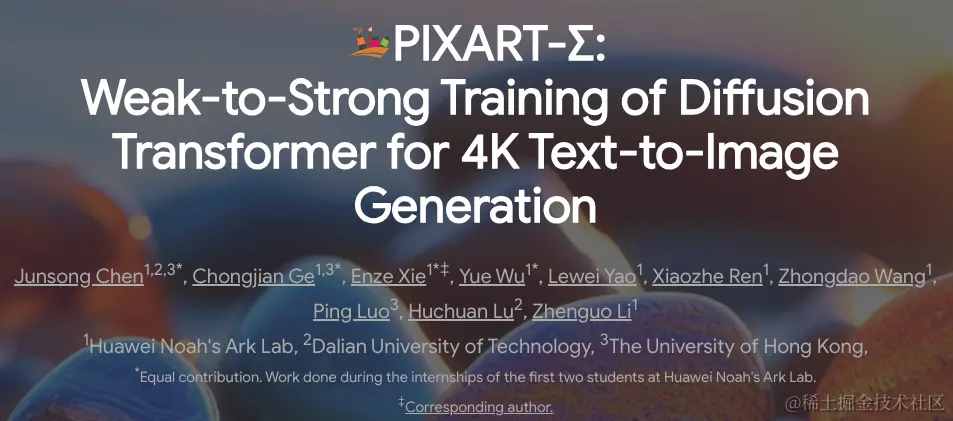 2024年3月11日由华为诺亚方舟实验室、大连理工大学和香港大学的研究团队共同开发的PixArt-Σ是一款能够直接生成4K分辨率图像的扩散变换模(DiT)。
