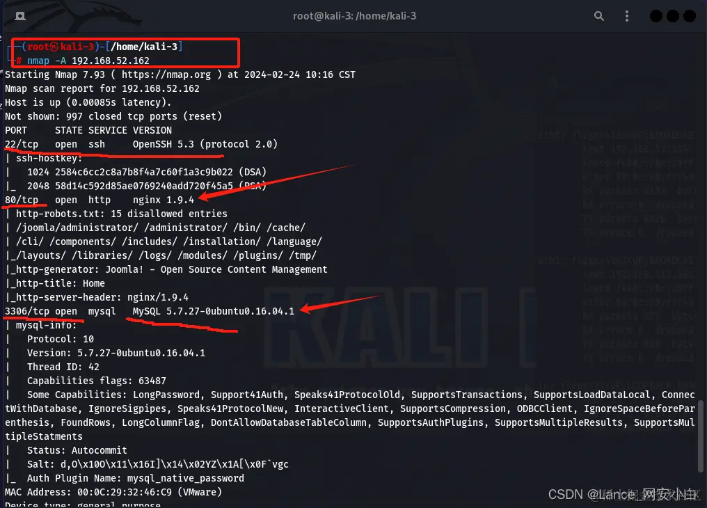 - #### nmap扫描存活IP-->根据IP和开放的端口服务确定目标主机-->访问目标网页确定环境正常