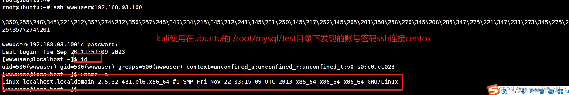 | [wwwuser@localhost ~]$ ssh firefart@192.168.93.100 | 密码:123456 |