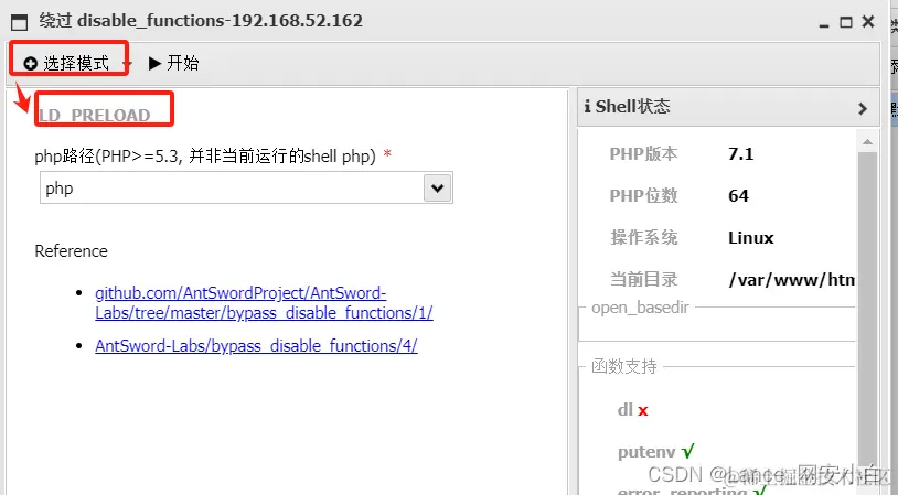 1. ## 中国蚁剑操作--(使用disable_functions插件绕过php的disable_functions模块禁用的函数)