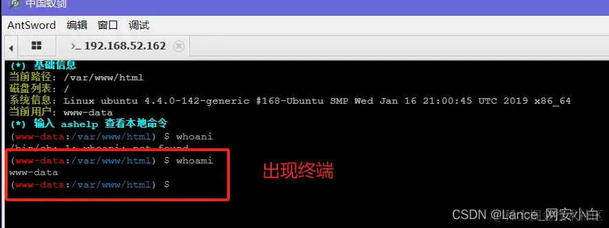 - #### 蚁剑链接一句话木马文件--》使用插件绕过禁用函数出现可用bash窗口