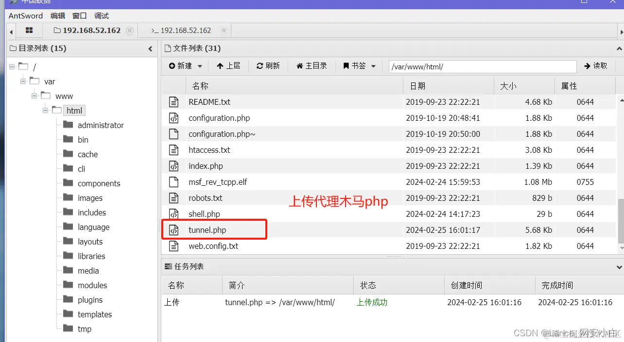 - kalI使用Neo-reGeorg生成隧道木马php--》kali使用Neo-reGeorg开启隧道代理--》蚁剑上传隧道木马tunnel.php--》kali网页访问tunnel.php页面出现正常空白页面(kali火狐浏览器开启代理)