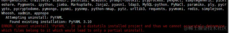 ERROR: Cannot uninstall 'PyYAML'. It is a distutils installed project and thus we cannot accurately