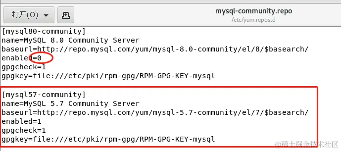 3.默认安装MySQL8.0,如果需要安装MySQL5.7的话需要修改/etc/yum.repos.d/mysql-community.repo配置文件