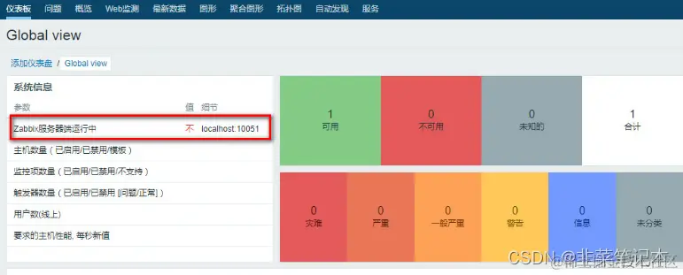 前台WEB显示:Zabbix server is running No localhost:10051;