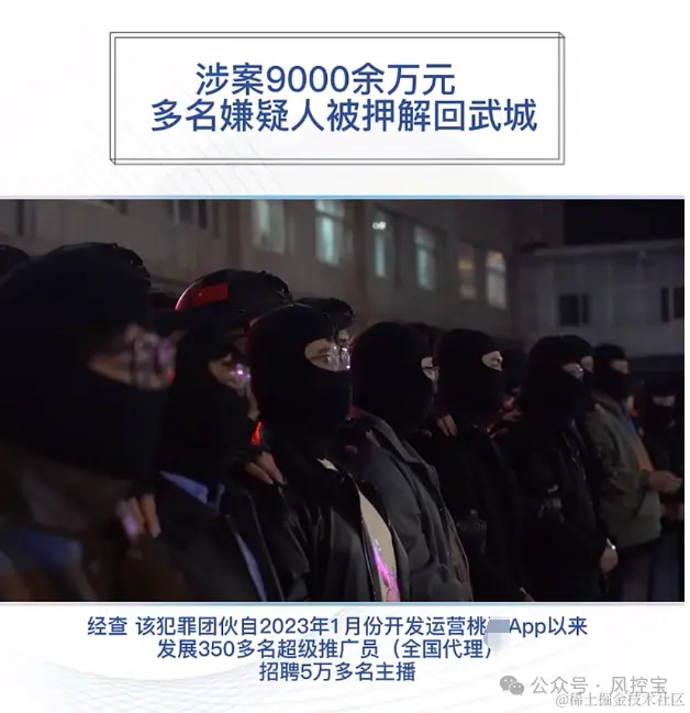 网传近日山东省德州市武城县公安局联合杭州滨江区公安局抓获一1V1社交产品运营公司人员共30余人,获“大巴点对点闭环管理”+“黑头套保护隐私”待遇。据悉,涉案产品为“桃X”APP,该产品从2023年1月开始上线运营,共有超推350余人,发展出5万多“主播”,主要以恋爱奔现等为幌子诱使男用户向“主播”刷礼物,涉案金额高达9000余万元,涉案产品运营公司为“杭州XX科技有限公司”。1v1行业仍有待于进一步精细化、合规化。社交平台鉴于其平台特性,容易被犯罪分子利用成为诈骗的工具,在这种情况下,平台更应当积极履行反电信网络诈骗义务,对用户行为进行审核管理,发现涉诈用户及时处置,通过反诈案例、反诈提示等多种方式提醒用户常见的套路和骗局。