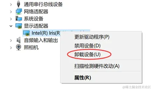 (2)进入操作系统,打开【设备管理器】,检查显卡驱动程序是否正常。如有异常,点击【卸载设备】并重新安装显卡驱动程序。