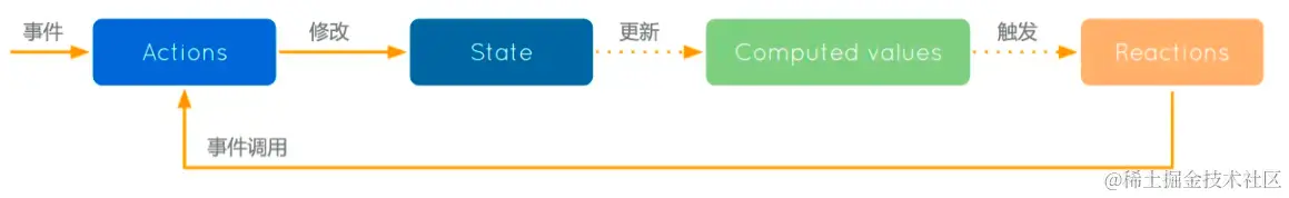 这是一个响应式的框架,当使用Redux出现疲劳的时候,看到Mobx,确实是相当振奋。通过全局定义一个变量,使用observable的概念进行包裹,生成一个信号源。每当变量进行变化的时候都会触发信号。所有使用这个变量的视图,都会采用订阅的方式收到这个信号从而刷新视图。