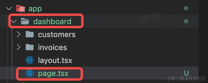 NEXT采用文件系统路径方式再加上自身添加的特殊规定来创建页面路由。在app目录下面的所有文件夹只要存在page.tsx文件,NEXT都会自动维护成路由。比如如果需要创建/dashboard路由,文件结构形式如下: