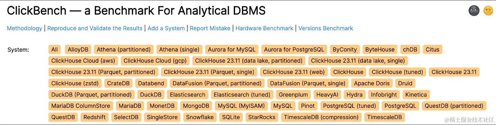 虽然您可能认为发布仅执行单表扫描的基准测试很俗气,但 Clickbench 实际上在代表许多实际工作负载方面做得相当好。如果您进行大量日志分析并需要计算网站的不同用户,这可能是性能的良好代理。也就是说,如果您使用星型模式运行更传统的数据仓库工作负载,Clickbench 将会产生误导。