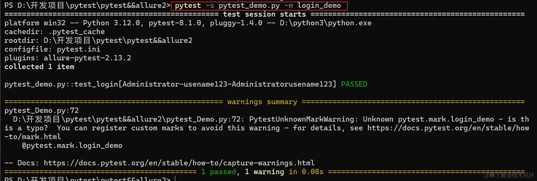 - 解决:在测试用例方法上加@pytest.mark.标签名